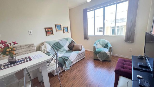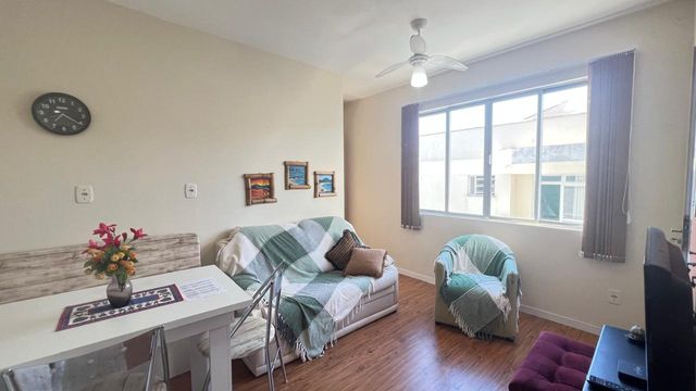 Excelente apartamento de 1 dormitório, a 30 metros da praia, com vista mar, sacada com churrasqueira, vaga rotativa e acomodações para até 4 pessoas.