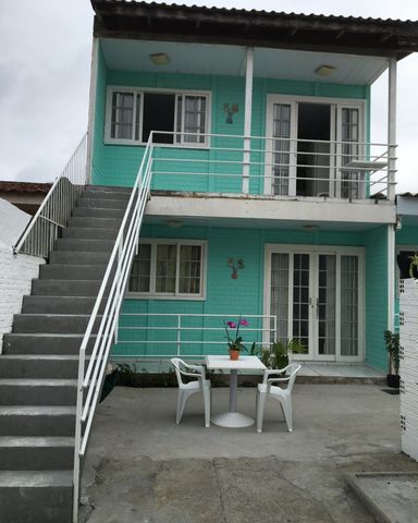 Apartamento pequeno de 2 dormitórios (estilo quitinete) sendo quarto com cama box de casal e ar condicionado split, cozinha, sala transformada em segundo dormitório com sofá-cama e uma cama de solteiro com ar condicionado, lavanderia com máquina de lavar roupas, banheiro, wi- fi e estacionamento. Fica no mesmo pátio da casa da proprietária, o sobrado que aparece ao lado da casa tem dois apartamentos iguais que são locados individualmente um na parte de cima e outro na parte de baixo.
