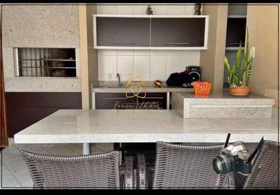 Casa grande, perfeita para toda a família com incríveis 400m² bem dimensionados, em ambientes espaçosos,c confortáveis e arejados. Dispõe no piso superior de 04 suítes super aconchegantes, sendo uma master e duas sacadas. Já no piso térreo 01 suíte, 01 lavabo, ampla sala de jantar e estar, cozinha sob medida, pátio com piscina e jardim, edícula com churrasqueira, banheiro, despensa e lavanderia, garagem fechada para 02 carros e 05 vagas descobertas. Imóvel com ar condicionado em todos os ambientes, todo murado.
