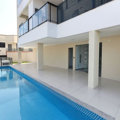 Localizado em um condomínio moderno com piscina, o imóvel está a apenas 400 metros da praia, em uma das regiões mais queridas do norte da Ilha de Florianópolis.